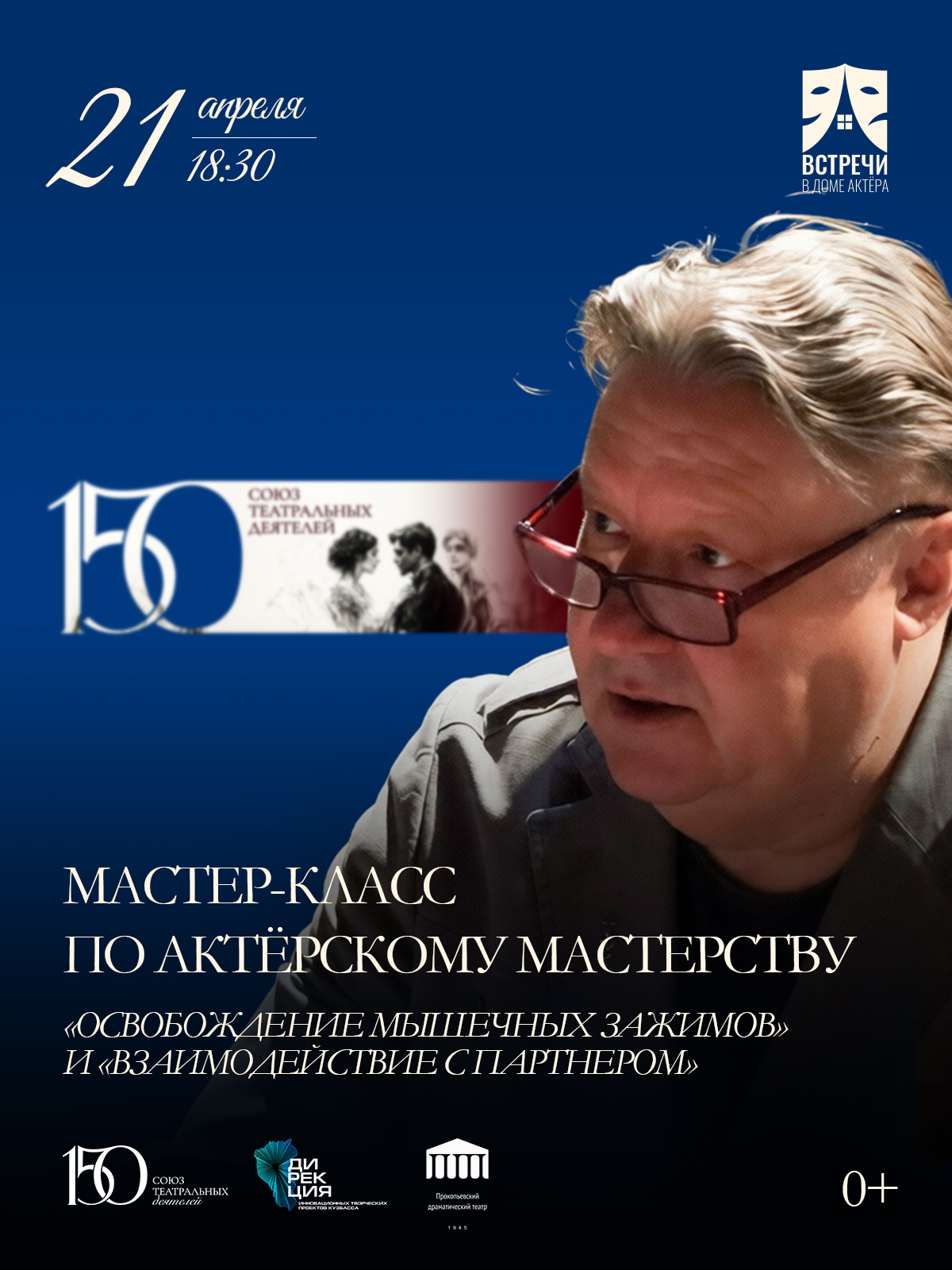 Проект «Встречи в Доме актёра» – это образовательная программа, включающая творческие мастер-классы, лекции и встречи с театральными деятелями – режиссёрами, актёрами, преподавателями по актёрскому мастерству, сценическому движению и другими.